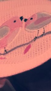 By some sort of miracle, I finally found the “perfect” blanket: pink, with two little birds, a mom and a baby. That blanket –although I’ve only touched it twice since then –has been an important item for me, as I soon came to believe that Alyssa’s sign to us that she is near are birds. We also found a pink hat with white butterflies.